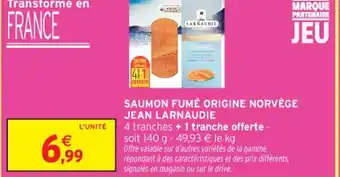 Offre JEAN LARNAUDIE Saumon fumé origine norvège chez Intermarché Contact
