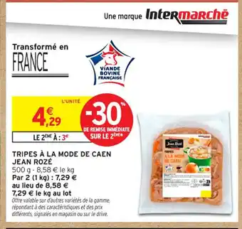 Actuellement en offre chez Intermarché Contact : JEAN ROZÉ Tripes à la mode de caen ✅ Valable du 30-12 au 11-01.