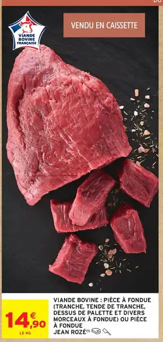 JEAN ROZE Viande bovine: pièce à fondue (tranche, tende de tranche, dessus de palette et divers morceaux à fondue) ou pièce : offres et promos Intermarché Contact à découvrir