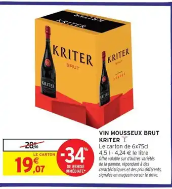 Actuellement en offre chez Intermarché Contact : KRITER Vin mousseux brut ✅ Valable du 13-01 au 25-01.