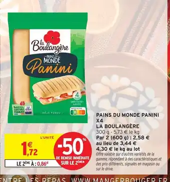Actuellement en offre chez Intermarché Contact : LA BOULANGÈRE Pains du monde panini x4 ✅ Valable du 14-04 au 26-04.