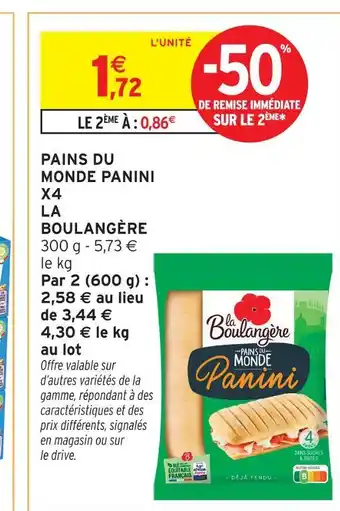 Actuellement en offre chez Intermarché Contact : La boulangère pains du monde panini x4 ✅ Valable du 14-04 au 26-04.