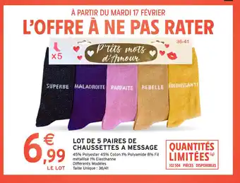 Actuellement en offre chez Intermarché Contact : Lot de 5 paires de chaussettes a message ✅ Valable du 17-02 au 22-02.