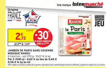 Actuellement en offre chez Intermarché Contact : MONIQUE RANOU Jambon de paris sans couenne ✅ Valable du 30-12 au 11-01.