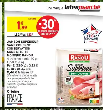 MONIQUE RANOU Jambon supérieur sans couenne conservation sans nitrite offres et promotions en ligne chez Intermarché Contact