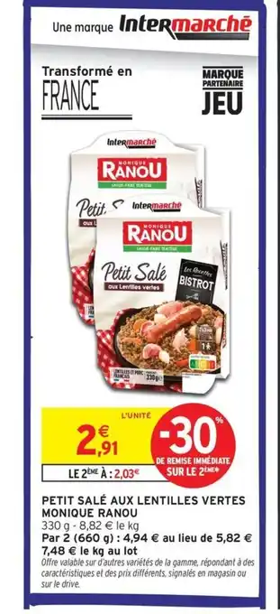Actuellement en offre chez Intermarché Contact : MONIQUE RANOU Petit salé aux lentilles vertes ✅ Valable du 13-01 au 25-01.