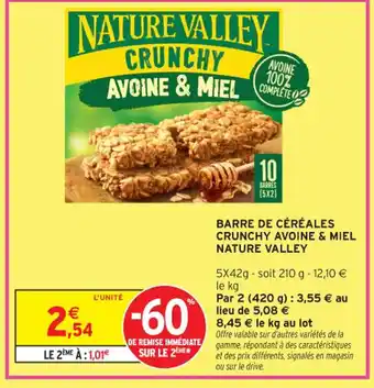 NATURE VALLEY Barre de céréales crunchy avoine & miel offres et promotions en ligne chez Intermarché Contact