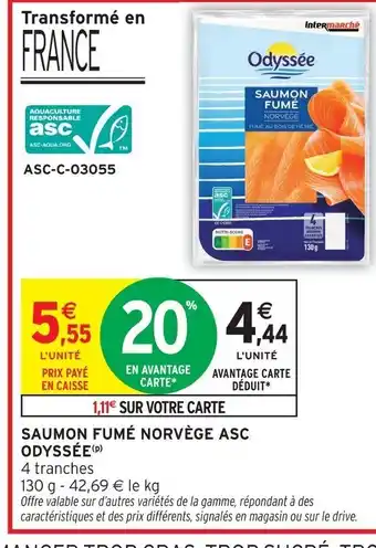 Actuellement en offre chez Intermarché Contact : ODYSSÉE Saumon fumé norvège asc ✅ Valable du 14-04 au 26-04.