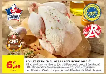 Actuellement en offre chez Intermarché Contact : Poulet fermier du gers label rouge igp ✅ Valable du 17-02 au 22-02.