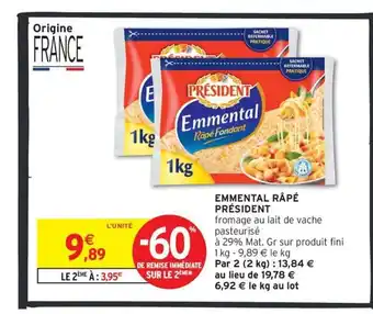 PRÉSIDENT Emmental râpé offres et promotions en ligne chez Intermarché Contact