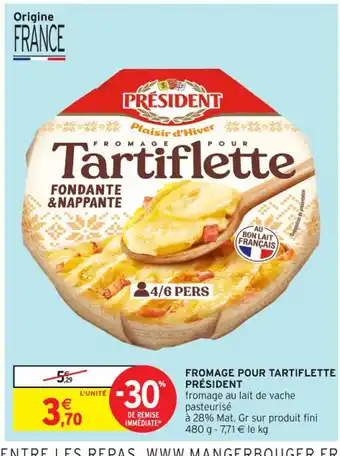 PRÉSIDENT Fromage pour tartiflette offres et promotions en ligne chez Intermarché Contact