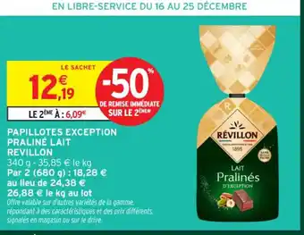 Actuellement en offre chez Intermarché Contact : REVILLON Papillotes exception pralinė lait ✅ Valable du 16-12 au 28-12.