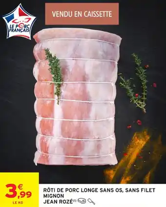 Actuellement en offre chez Intermarché Contact : Rôti de porc longe sans os, sans filet mignon jean rozé ✅ Valable du 3-02 au 15-02.