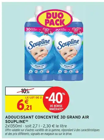 Soupline adoucissant concentré 3d grand air offres et promotions en ligne chez Intermarché Contact