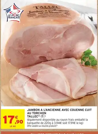 Actuellement en offre chez Intermarché Contact : Tallec jambon à l'ancienne avec couenne cuit au torchon ✅ Valable du 3-03 au 15-03.