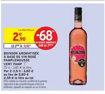 Actuellement en offre chez Intermarché Contact : VERY PAMP Boisson aromatisée à base de vin rosé pamplemouse ✅ Valable du 14-04 au 26-04.