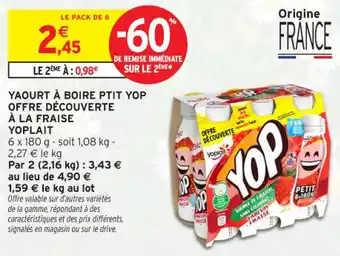 Offre Yaourt à boire ptit yop offre découverte à la fraise yoplait chez Intermarché Contact