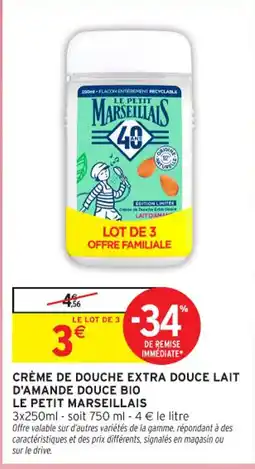 Crème de douche extra douce lait d'amande douce bio le petit marseillais