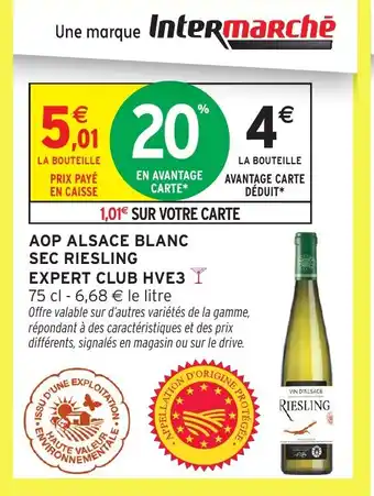 Actuellement en offre chez Intermarché Express : Aop alsace blanc sec riesling expert club hve3 ✅ Valable du 30-12 au 11-01.