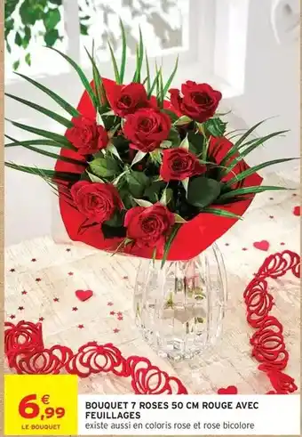 Bouquet 7 roses 50 cm rouge avec feuillages offres et promotions en ligne chez Intermarché Express