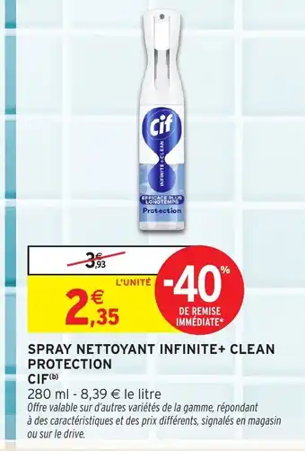 Actuellement en offre chez Intermarché Express : CIF Spray nettoyant infinite+ clean protection ✅ Valable du 30-12 au 11-01.