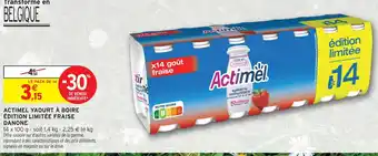Actuellement en offre chez Intermarché Express : Danone actimel yaourt à boire édition limitée fraise ✅ Valable du 3-02 au 15-02.