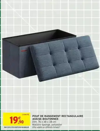 Actuellement en offre chez Intermarché Express : Dim - pouf de rangement rectangulaire assise boutonnée ✅ Valable du 3-02 au 15-02.