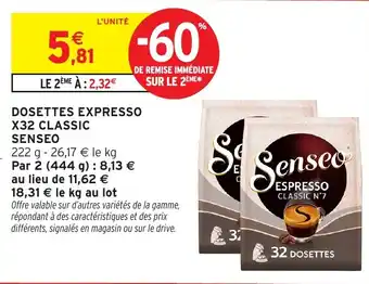 Actuellement en offre chez Intermarché Express : Dosettes expresso x32 classic senseo ✅ Valable du 13-01 au 25-01.