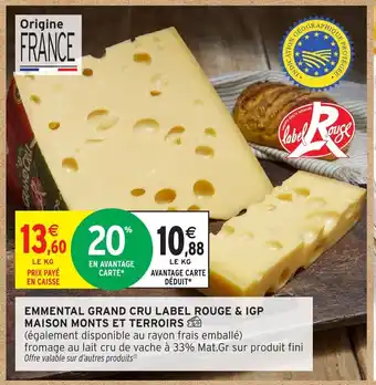 Actuellement en offre chez Intermarché Express : Emmental grand cru label rouge & igp maison monts et terroirs ✅ Valable du 27-01 au 8-02.