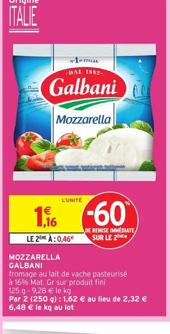 Actuellement, GALBANI Mozzarella est en promotion chez Intermarché Express. Toutes les informations utiles comme le prix, les conditions et la durée de validité sont affichées sur cette page. Consultez également les promotions similaires pour GALBANI Mozzarella, afin de faire le meilleur choix. La promo GALBANI Mozzarella est valable du 24-03-2026 au 06-04-2026. Si elle est expirée, regardez les autres offres équivalentes. Vous pouvez aussi suivre cette catégorie de produit pour être alerté lorsqu’une nouvelle promotion GALBANI Mozzarella apparaît chez Intermarché Express.Questions fréquemment posées au sujet de GALBANI Mozzarella