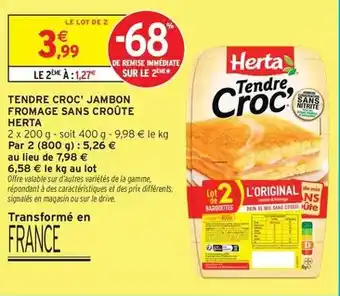 Actuellement en offre chez Intermarché Express : Herta - tendre croc' jambon fromage sans croûte ✅ Valable du 20-01 au 1-02.