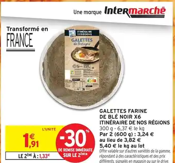 Offre ITINÉRAIRE DE NOS RÉGIONS Galettes farine de blé noir x6 chez Intermarché Express