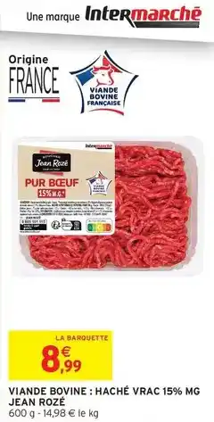 Jean rosé - viande bovine: haché vrac 15% mg offres et promotions en ligne chez Intermarché Express