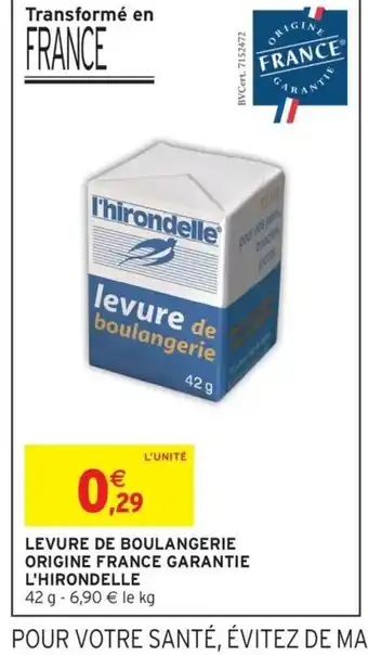 Actuellement en offre chez Intermarché Express : L'HIRONDELLE Levure de boulangerie origine france garantie ✅ Valable du 17-02 au 22-02.