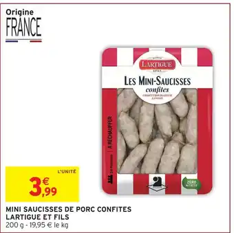 Offre Lartigue et fils mini saucisses de porc confites chez Intermarché Express