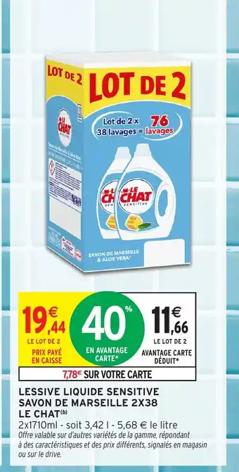 LE CHAT Lessive liquide sensitive savon de marseille 2x38 offres et promotions en ligne chez Intermarché Express