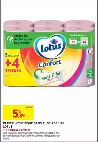 Offre Lotus - papier hygiénique sans tube rose x8 chez Intermarché Express