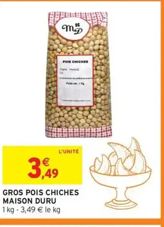 Actuellement en offre chez Intermarché Express : MAISON DURU Gros pois chiches ✅ Valable du 17-02 au 22-02.