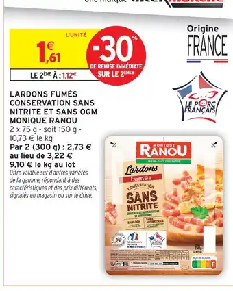 Offre Monique ranou lardons fumés conservation sans nitrite et sans ogm chez Intermarché Express
