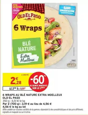 Old el paso - 6 wraps au blé nature extra moelleux : offres et promos Intermarché Express à découvrir
