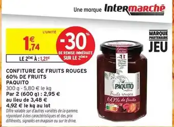 Offre Paquito - confiture de fruits rouges 60% de fruits chez Intermarché Express