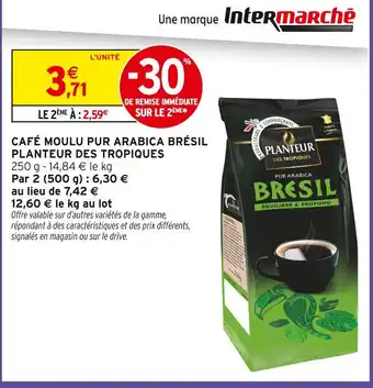 Actuellement en offre chez Intermarché Express : Planteur des tropiques café moulu pur arabica brésil ✅ Valable du 6-01 au 18-01.