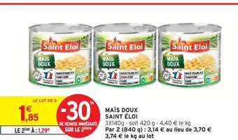Actuellement en offre chez Intermarché Express : Saint eloi maïs doux ✅ Valable du 14-04 au 26-04.