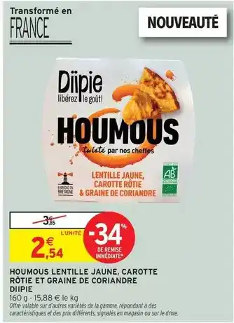 Actuellement en offre chez Intermarché Express : Signal - houmous lentille jaune, carotte rotite et graine de coriandre ✅ Valable du 24-02 au 8-03.