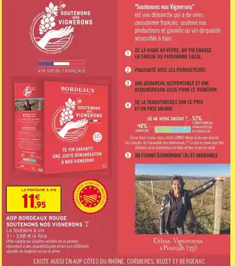 En plus de l'offre Soutenons nos vignerons aop bordeaux rouge, Intermarché Express propose une large gamme de produits. Consultez le Catalogue Intermarché Express hebdomadaire pour découvrir les meilleures offres et promotions. En plus de Soutenons nos vignerons aop bordeaux rouge, il y a aussi : Soutenons nos vignerons aop bordeaux rouge, AOP Bordeaux Rouge Soutenons Nos Vignerons & Aop bordeaux rouge soutenons nos vignerons.