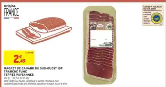 Offre Terres paysannes magret de canard du sud-ouest igp tranché fumé chez Intermarché Express