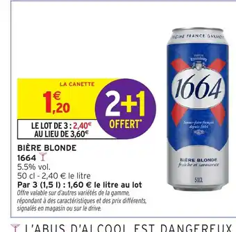 Actuellement en offre chez Intermarché Hyper : 1664 Bière blonde ✅ Valable du 10-02 au 22-02.