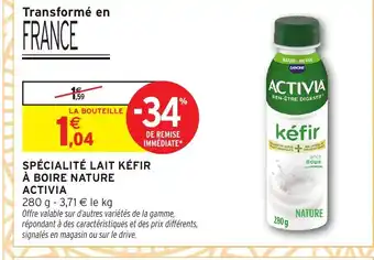 ACTIVIA Spécialité lait kéfir à boire nature : offres et promos Intermarché Hyper à découvrir