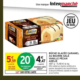 Actuellement en offre chez Intermarché Hyper : ADÉLIE Bûche glacée caramel au beurre salé vanille pécan ✅ Valable du 16-12 au 28-12.