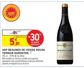 Actuellement en offre chez Intermarché Hyper : Aop beaumes de venise rouge terroir daronton ✅ Valable du 8-04 au 19-04.
